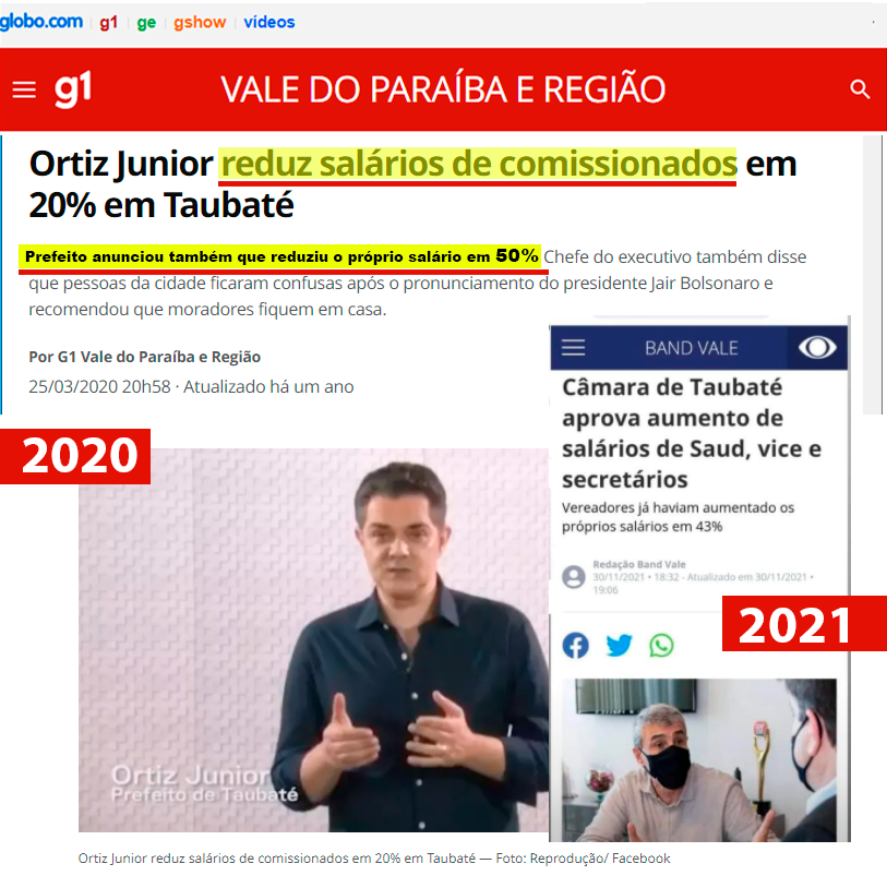 Em 2020, REDUZI o salário dos comissionados em 20% e o meu em 50%. Em 2021, Saud AUMENTA o próprio salário, aumenta em quase 60% o salário dos secretários e aumenta 224% (vergonha!!) o salário da vice-prefeita.